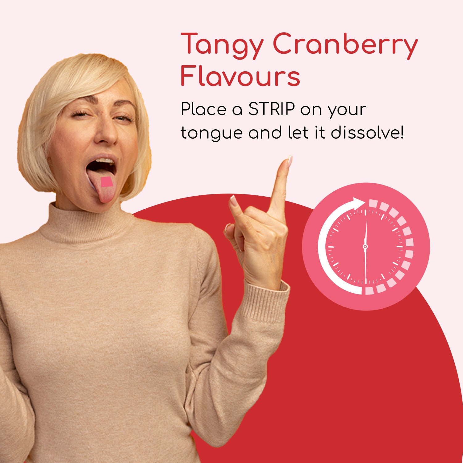 Faster Absorption and Powerful Results: The innovative strip dissolves quickly in your mouth, delivering beneficial ingredients directly to your bloodstream. Our precisely formulated doses are designed to optimise faster absorption. A sugar-free strip dissolves quickly in your mouth, delivering an essential dose with refreshing Cranberry Flavour.Top of Form