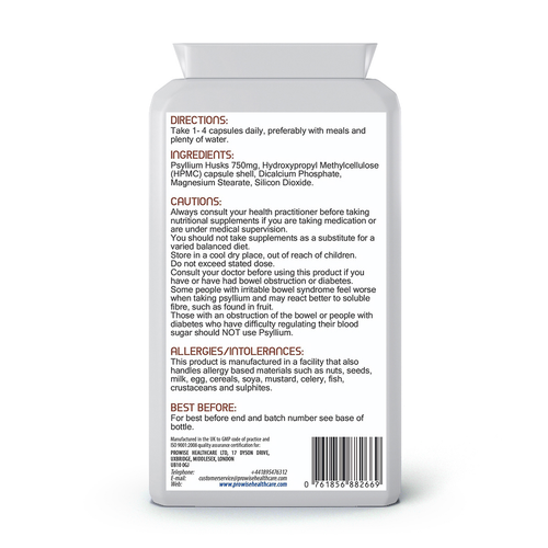 Psyllium Husks 750mg x 90 Capsules by Prowise Healthcare